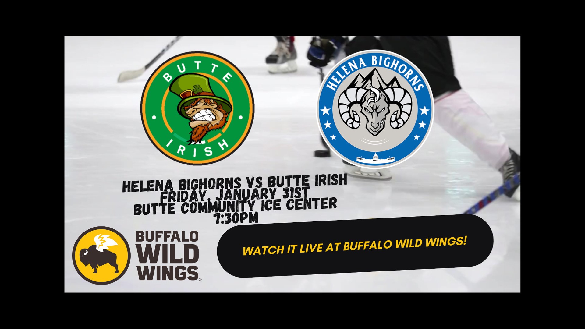 The Bighorns are on the road tonight to take on the Butte Irish, game time is 7:30pm, watch it live at Buffalo Wild Wings!