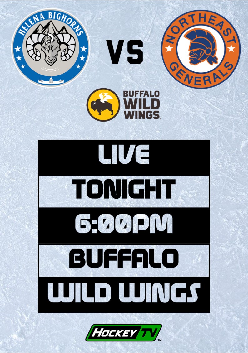 After an OT shootout win against the Oregon Tradesman on Wednesday night, the Bighorns are set to face their second opponent tonight, the Northeast Generals. Helena will need this win to advance to the semi finals round of the Fraser Cup Finals. Tonight’s game will air live at Buffalo Wild Wings-Helena, at 6:00pm MST.