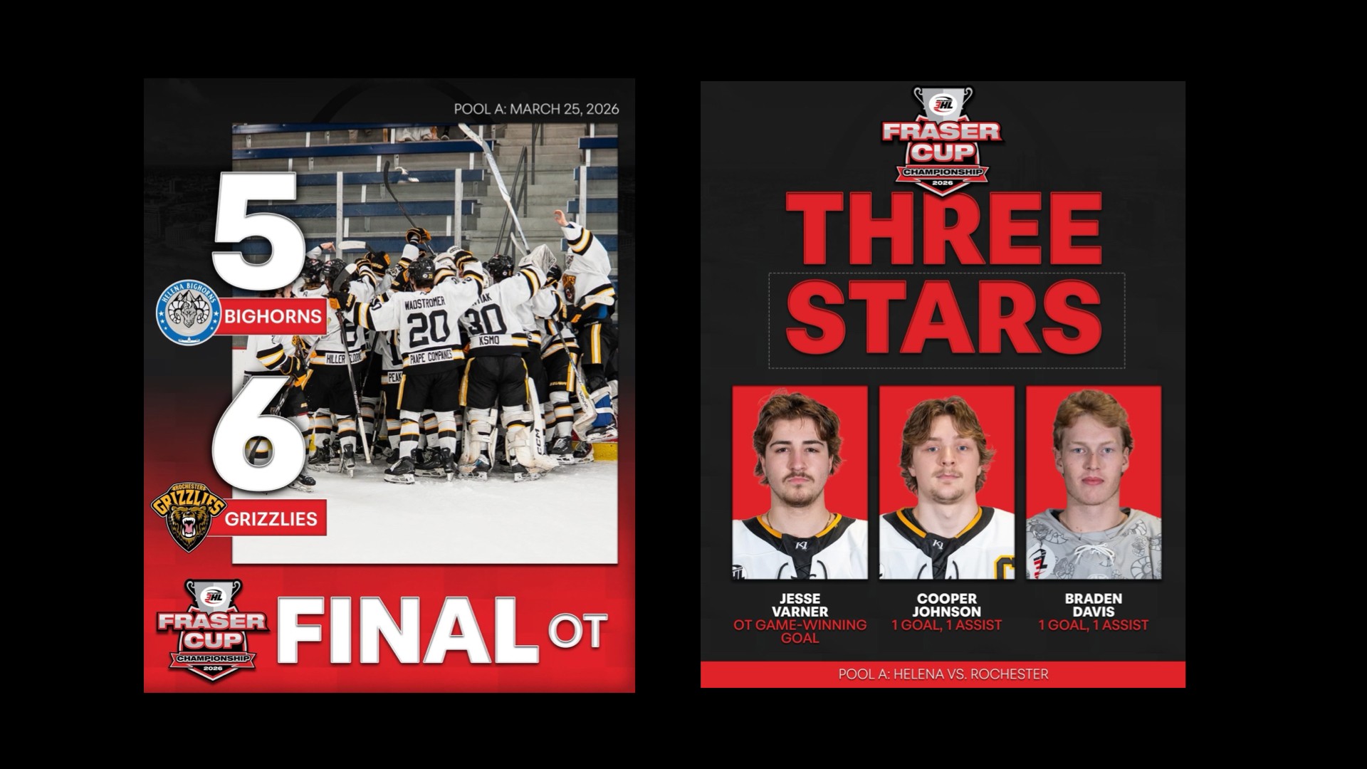 It was a close and intense game between the Helena Bighorns and the Rochester Grizzlies, but Rochester came out on top with a 6-5 overtime win.