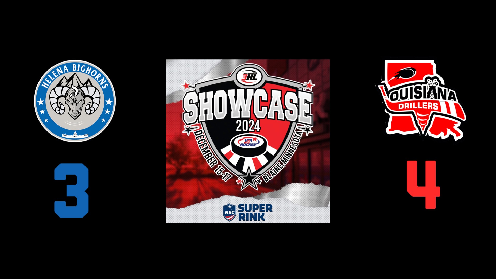 It was an exciting last game of the NA3HL showcase between the Helena Bighorns and the Louisiana Drillers. The Drillers started out on top leading 2-0, but the Bighorns came back to tie it up, then scoring another goal, taking a 3-2 lead. With only a few of minutes left in the third period, the Drillers snuck one past Helena’s goalie, Tyler Miller, putting the game into overtime, and Louisiana ended up taking the game win with a 4-3 victory over the Bighorns. Goals for Helena were scored by Trey Pareja (Austin Uecker, Kelton Chadwick), Trey Pareja (Owen Gruener, Kade Pareja), and Austin Uecker (Chase Berg, Finn Theriault). Tyler Miller was able to stop 36 of the 40 shots on his net.