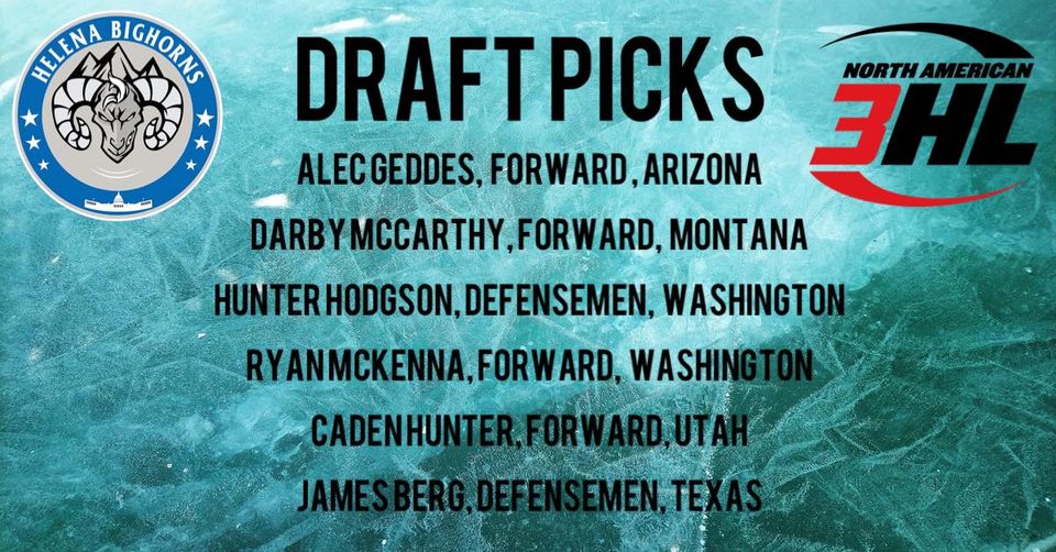 Today was the NA3HL entry draft, the Helena Bighorns had a great day at the draft table. The Bighorns drafted 4 forwards and 2 defensemen to add to their list for the coming season.