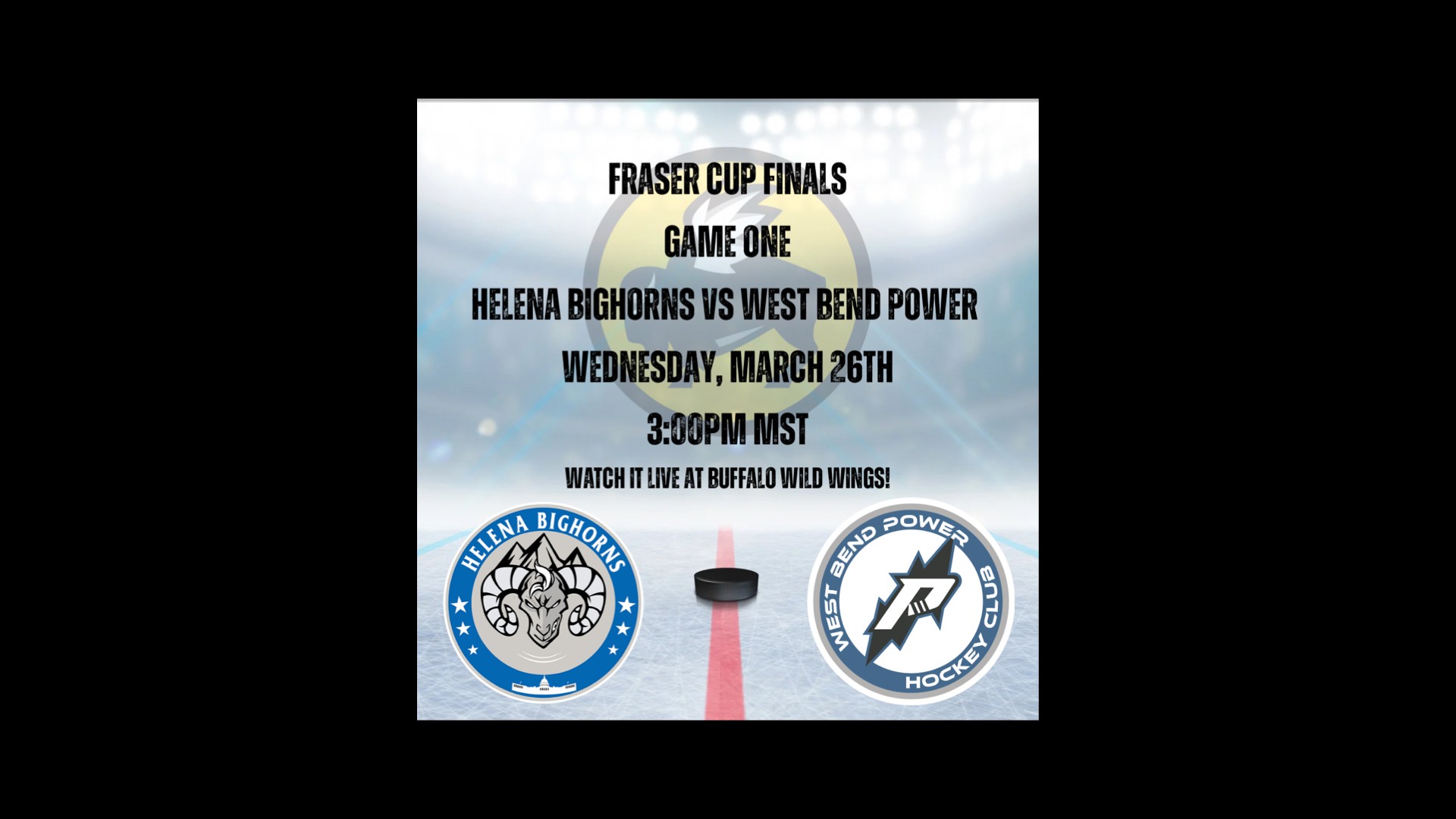Game one of the Fraser Cup Finals begins Wednesday, with the Helena Bighorns facing off against the West Bend Power! Game time is 3:00pm MST, watch it live at Buffalo Wild Wings in Helena!