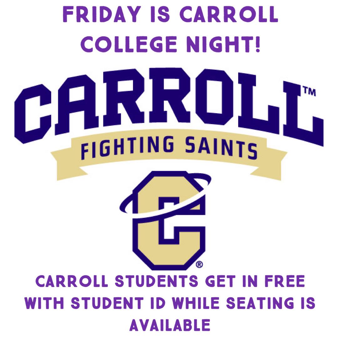FRIDAY IS CARROLL COLLEGE NIGHT